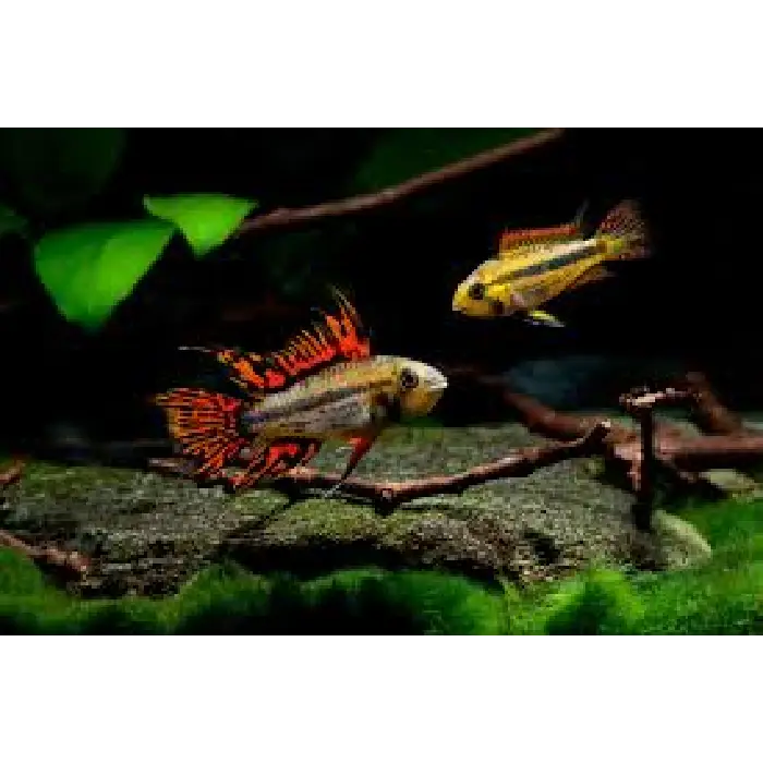 A varied diet helps bring out the intense red colour that makes Super Red Apistogramma so popular.