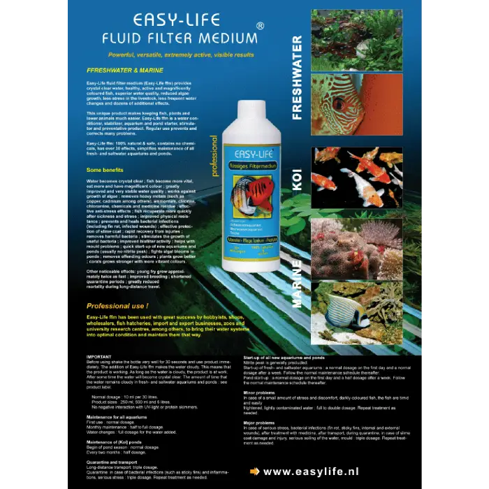 Fluid Filter Medium 250ml is an allโinโone water conditioner that detoxifies harmful substances, supports fish health and improves water clarity in freshwater aquariums. Perfect for smaller tanks or trying the product for the first time, Fluid Filter Medium 250ml is ideal for water changes, transport, new setups and emergency detoxification.