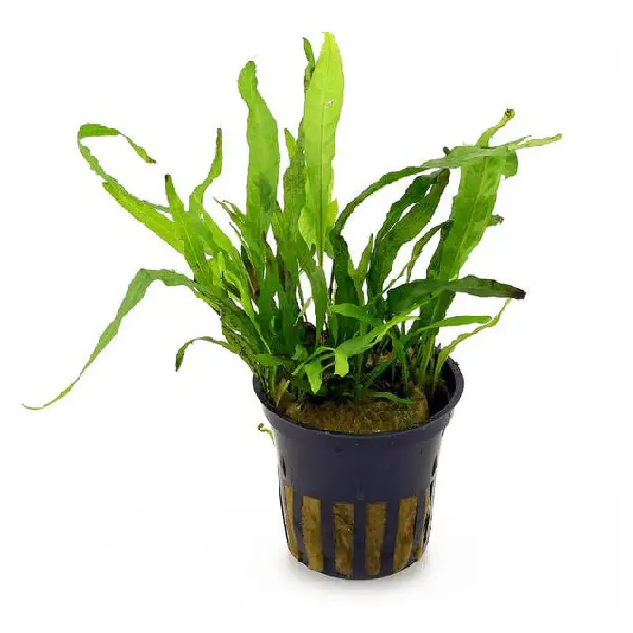 Microsorum pteropus “Philippine,” a captivating aquarium plant with unique characteristics. Also known as Java fern, this variant boasts delicate, intricately textured leaves that create a graceful, feathery appearance underwater. The lush green coloration, combined with its distinctive leaf shape, imparts an enchanting and natural feel to aquariums.