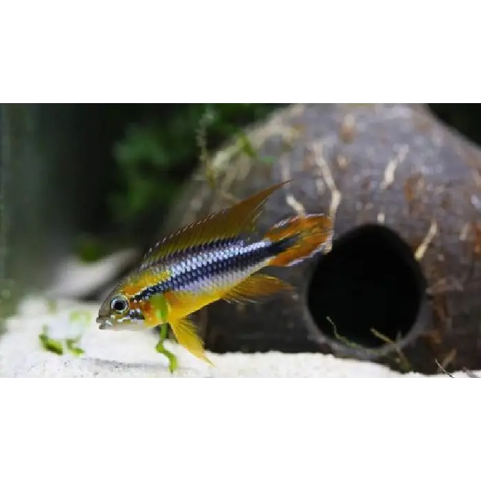 These dwarf cichlids are generally peaceful but can become territorial, especially when pairing or breeding. They are best kept with small, calm tankmates such as tetras, rasboras, pencilfish, and peaceful bottom-dwellers that won’t compete for caves. Avoid fin-nippers and very boisterous fish. A single male with one or more females in a well-structured tank often works well.