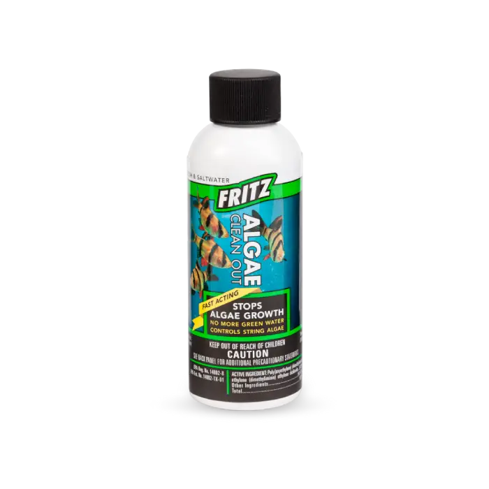 Fritz Algae Clean Out 118ml is a liquid algae control solution for freshwater aquariums, designed to help clear green water and nuisance algae growth. Used as directed, Fritz Algae Clean Out 118ml helps restore clarity, improve the look of your tank and support a healthier environment for fish and plants.